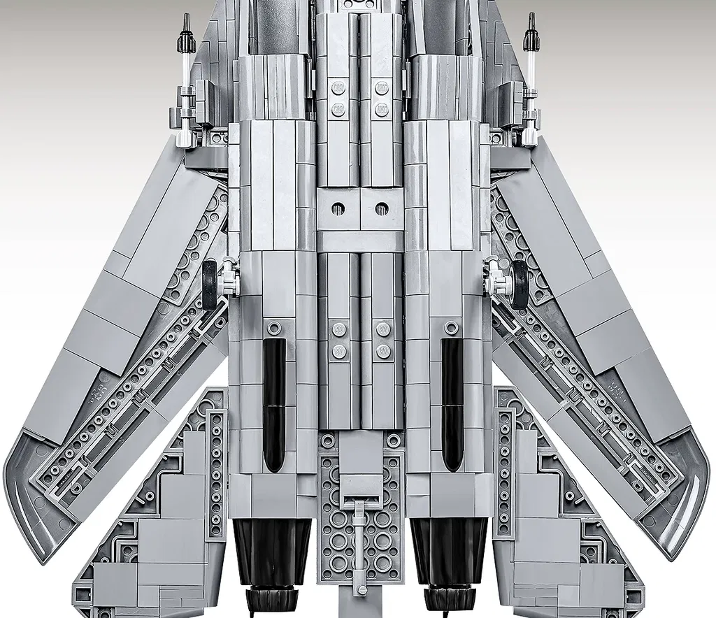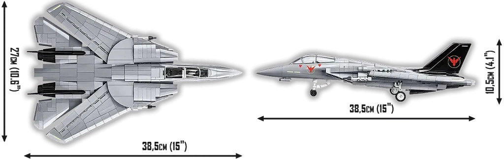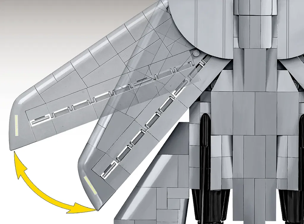 • Rörliga vingar med variabel geometri - Detta är en viktig funktion hos den riktiga F-14 och en av de mest spektakulära tekniska lösningarna i flyghistorien. I modellen från COBI kan vingarna förlängas och fällas ut - precis som i originalet - vilket möjliggör en effektiv presentation av modellen.