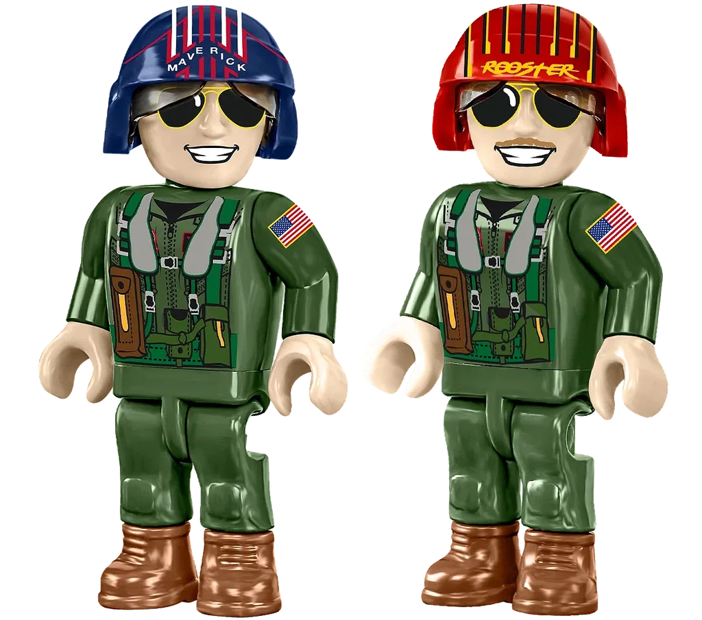 • Två pilotfigurer - Setet innehåller figurer av två hjältar: Pete "Maverick" Mitchell och sonen till hans avlidne partner, Bradley "Rooster" Bradshaw.